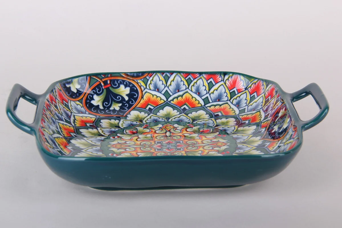 Сервирочоное блюдо изготовлено из фарфора. Посуда подойдет для эстетической подачи разнообразных закусок, фруктов и сладостей.
