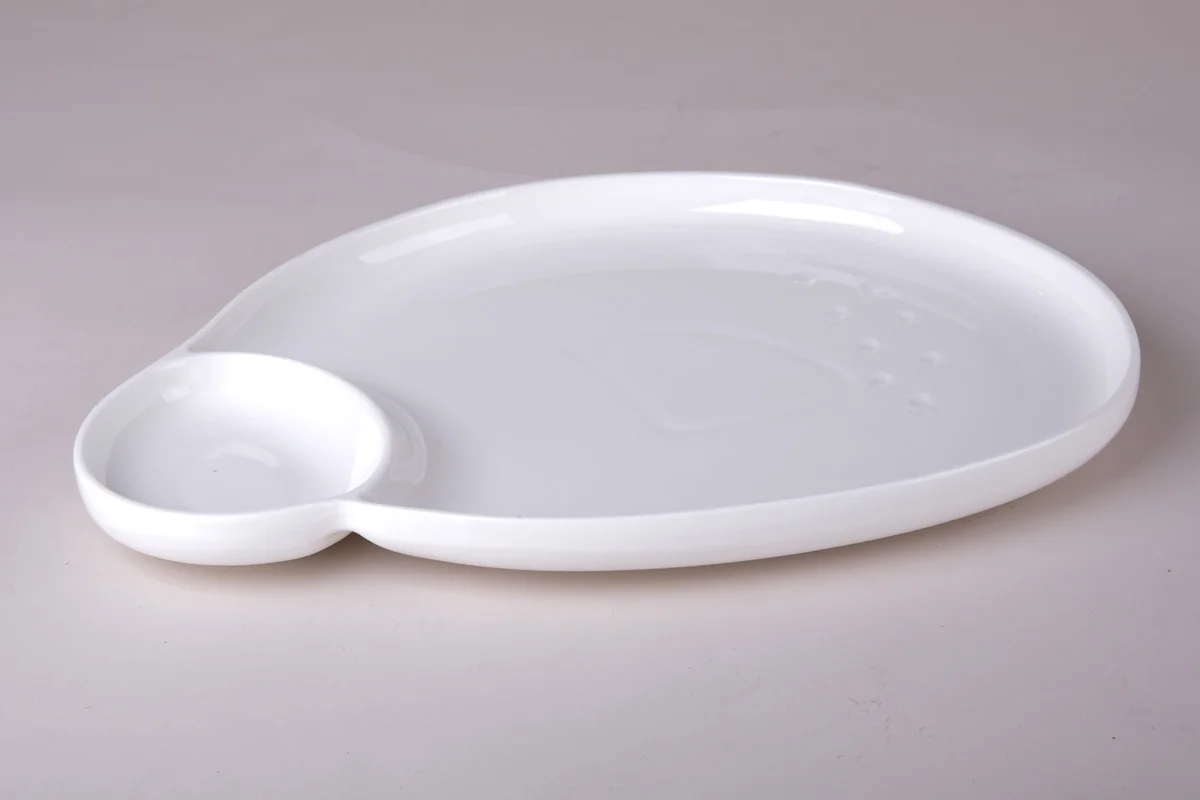 Сервирочоное блюдо изготовлено из белоснежного фарфора. Посуда подойдет для эстетической подачи разнообразных закусок, фруктов и сладостей.
