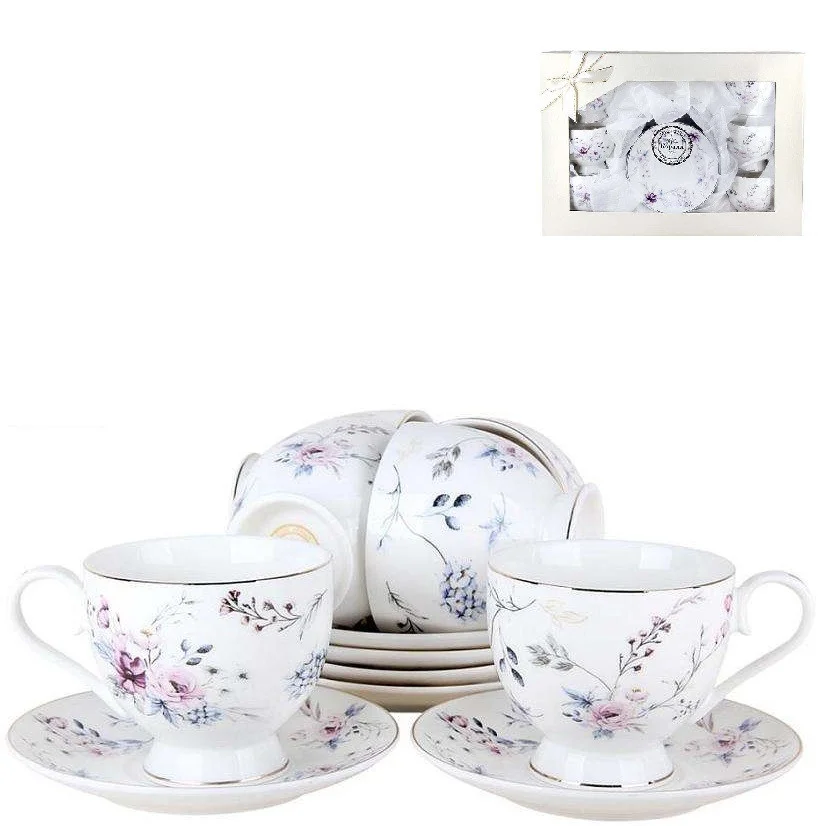 Чайный набор «Пасадена» K05-RG — это посуда для сервировки стола из тонкостенного упрочненного фарфора. Имеет нежный цветочный декор с золотой окантовкой.