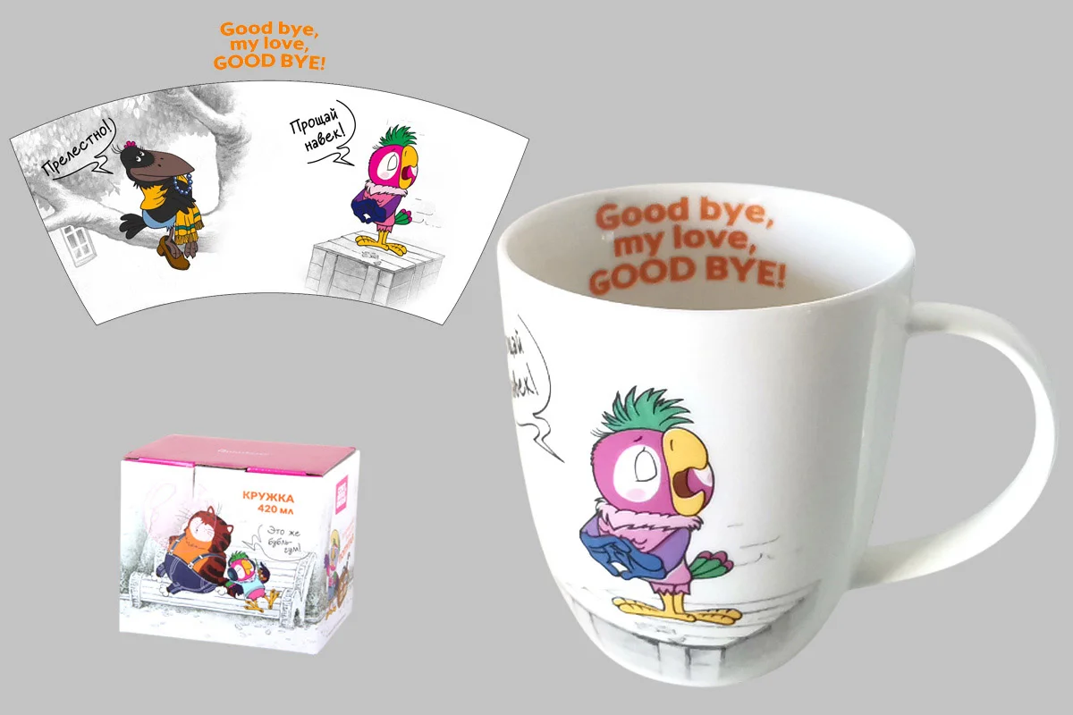 Кружка "Попугай Кеша" из качественного фарфора с глянцевой глазурью. Изделие декорировано любимым героем из всеми известного мультфильма и обязательно создаст хорошее настроение.