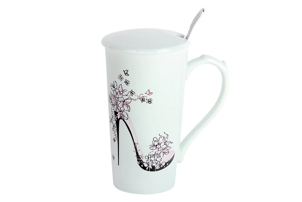 Кружка для заваривания Коралл 420мл с крышкой и ложкой Fly Lady 5105 микс