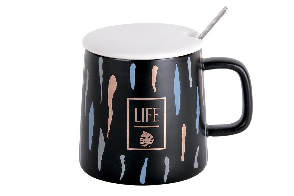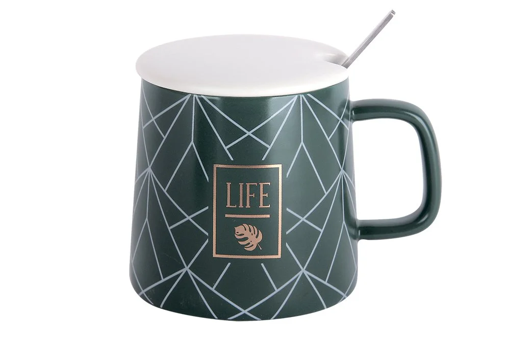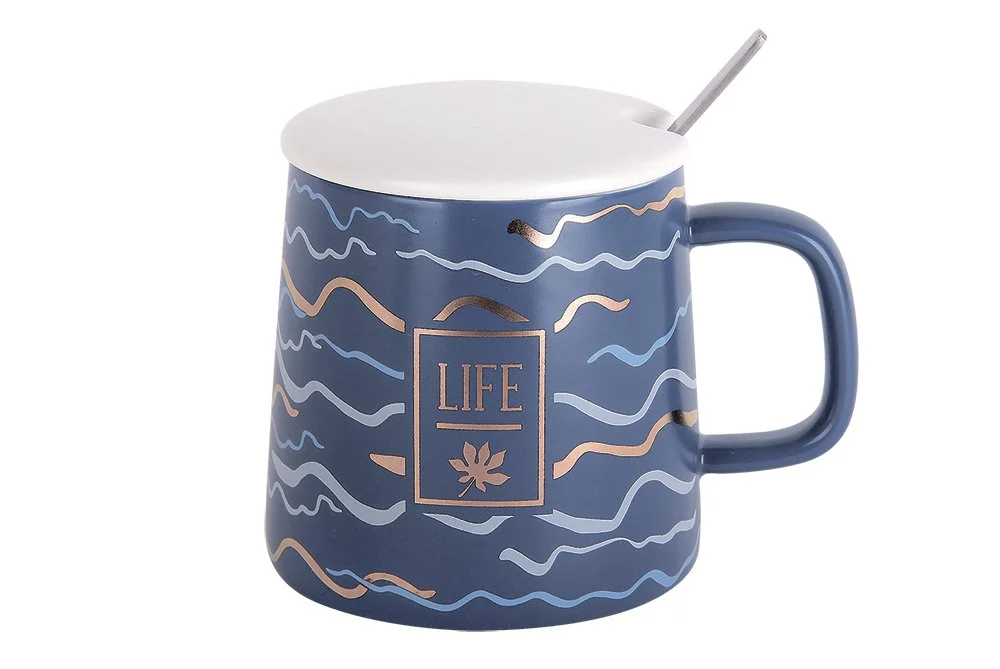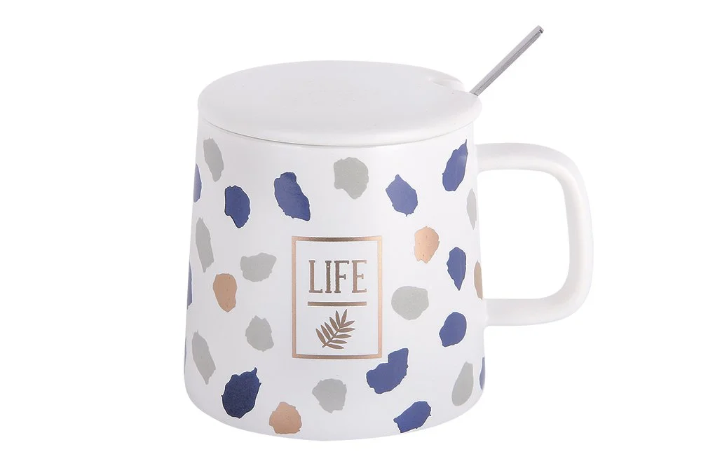 Кружка для заваривания Коралл 420мл с крышкой и ложкой Life 5090 микс