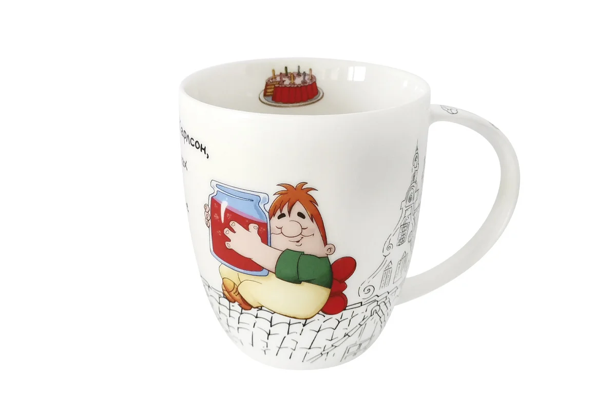 Кружка «Малыш и Карлсон» объёмом 420 мл с артикулом HD2411-M4 выполнена из фарфора и упакована в подарочную упаковку.