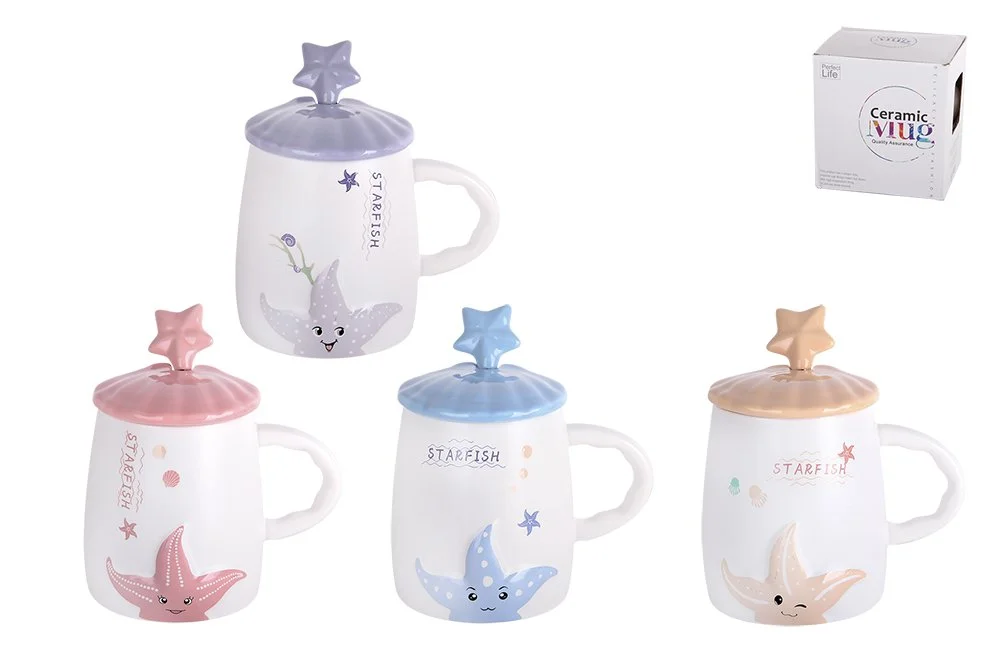 Кружка заварочная Коралл 450мл с крышкой и ложкой Звездочка 5102 микс