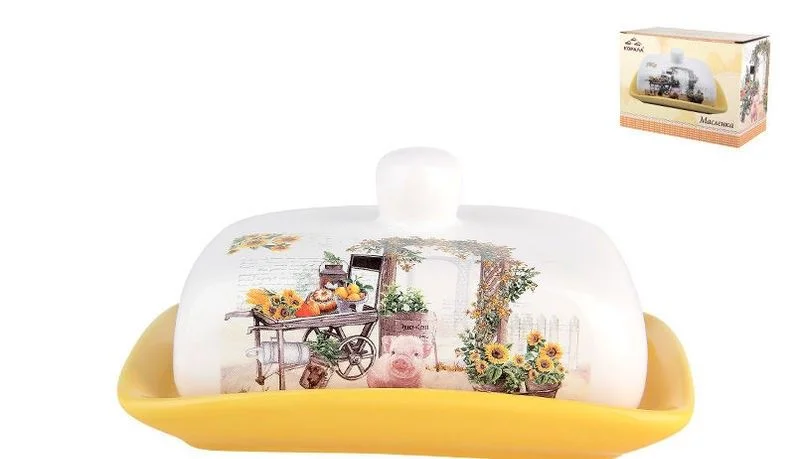 Масленка изготовлена из доломита, этот материал отличается прочностью не хуже чем у керамики, а также обладает абсолютной гладкостью, поэтому масленка не будет впитывать запахи, а также ее легко вымыть даже без моющих средств. Масленка упакована в подарочную упаковку.