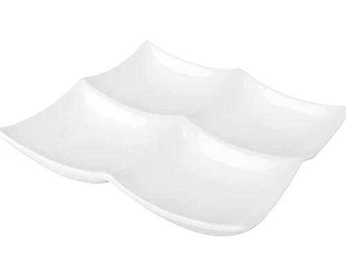 Фарфоровая менажница прекрасно подойдет для сервировки стола в будний или праздничный день. Посуда разделена на 4 секции. Благодаря лаконичности, классическому дизайну и белому цвету, изделие легко впишется в любой столовый сервиз.
