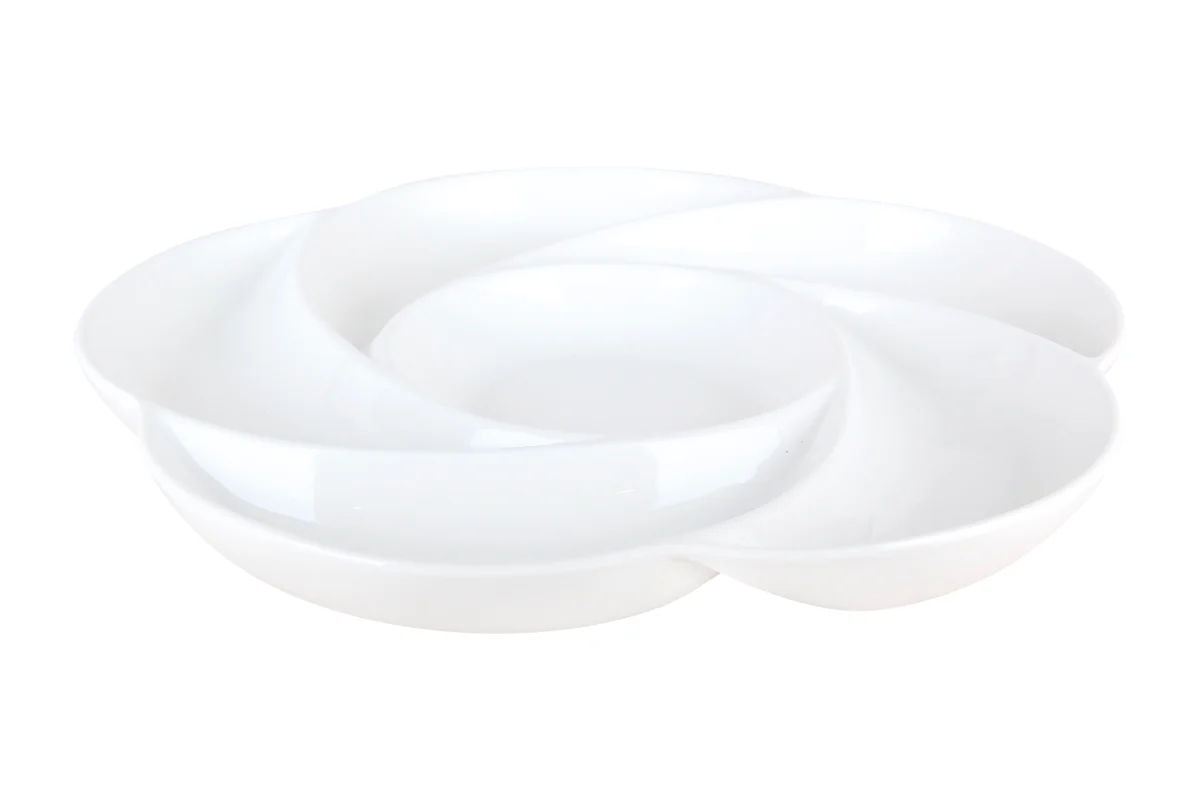 Фарфоровая менажница прекрасно подойдет для сервировки праздничного стола.