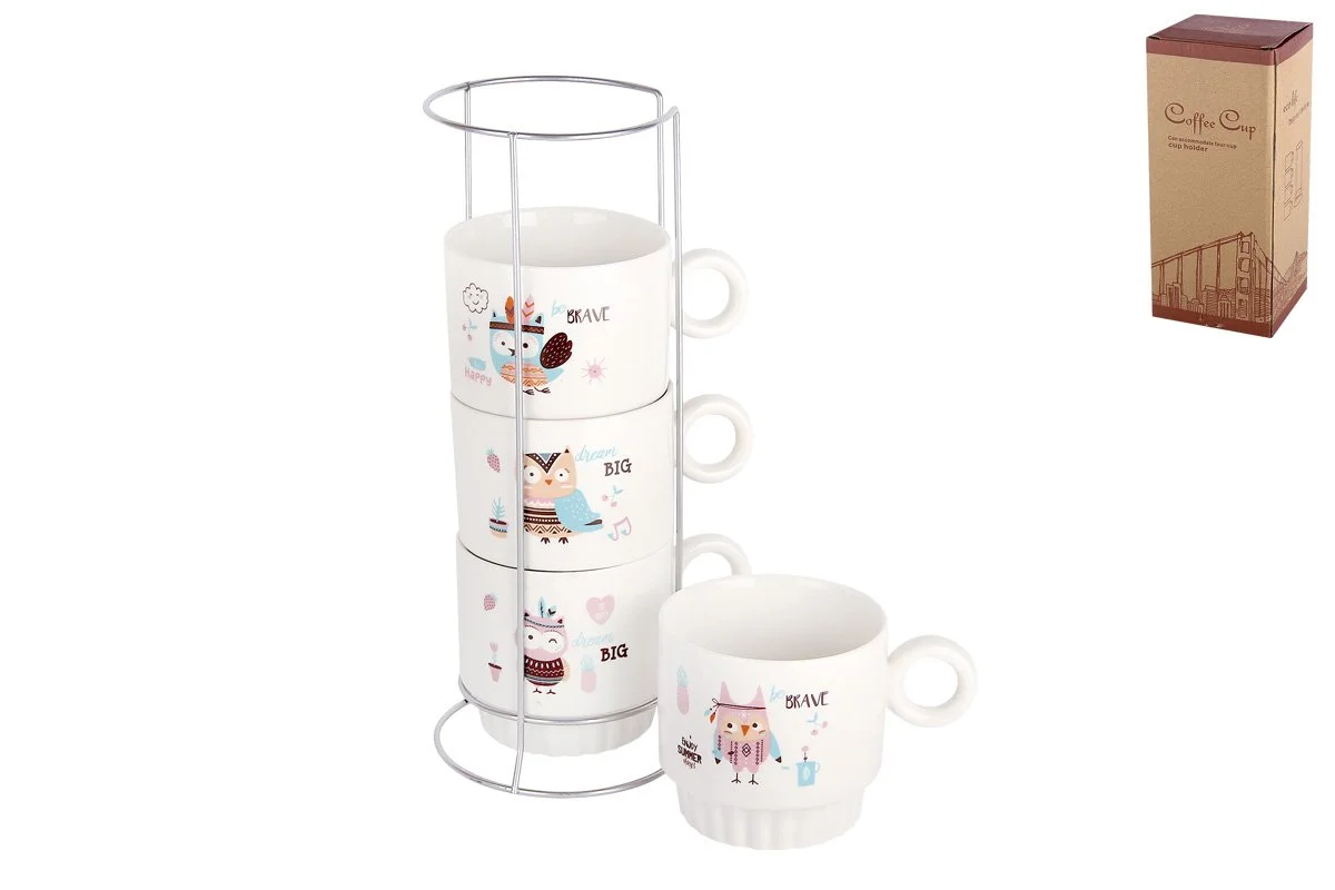 Набор кружек 1/5 на металлической подставке 150мл Коралл Веселые совы 5091
