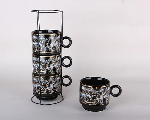 Набор кружек на металлической подставке 4 шт 5829 КОРАЛЛ