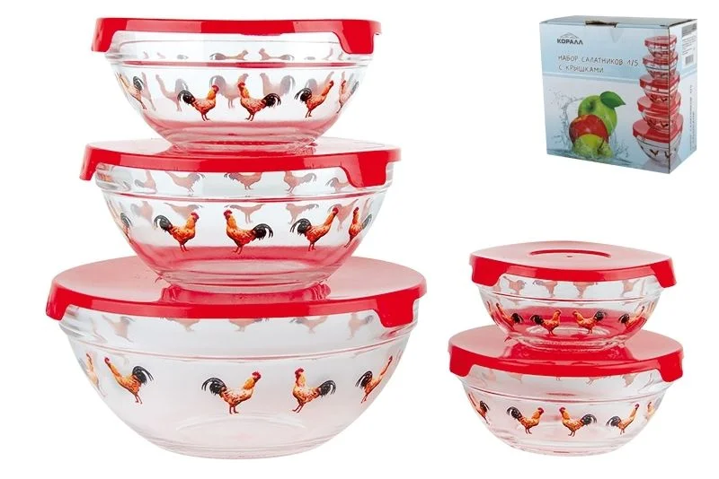 | Состав набора: | салатники 160мл/9см (1шт), 260мл/10,3см (1шт), 410мл/12,5см (1шт), 580мл/14см (1шт), 1,1л/17см (1шт). |