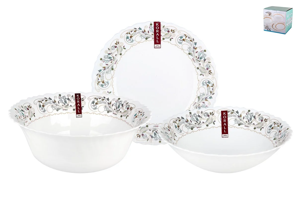 - Составтарелка плоская 19см (6шт), миска 700мл/19см (6шт), салатник 1200мл/20см (1шт)