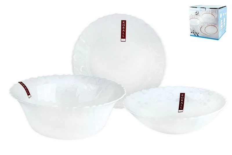 Столовый набор из стеклокерамики, этот материал отличается прочностью, по сравнению с обычным стеклом, а также экологичностью. Посуда из стеклокерамики прослужит Вам очень долго. Также ее можно использовать в микроволновой печи, так как она не боится больших перепадов температуры.