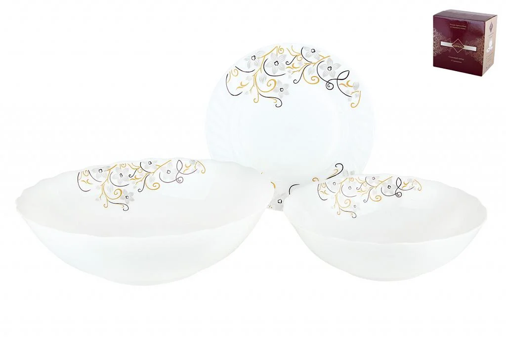 - Состав - тарелка 18см (6шт), салатник 700мл/18см (6шт), салатник 1300мл/23см (1шт)