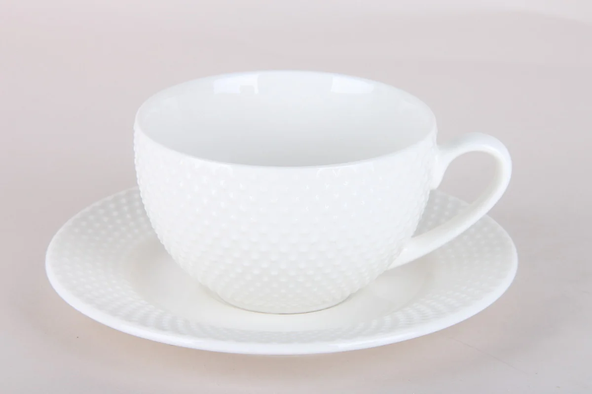 Чайная пара декорирована выпуклым узором.
