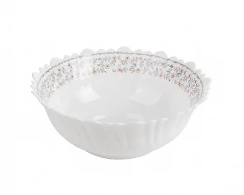 Салатник изготовлен из высококачественной стеклокерамики. Изделие представлено в круглой форме с волнистым краем и декорировано нежным узором.