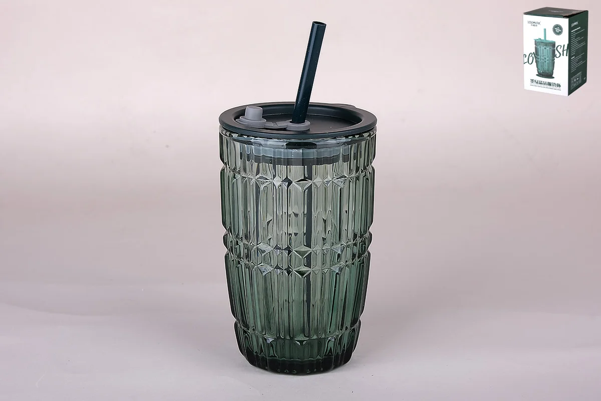 Стакан с трубочкой 420мл зеленый 8550