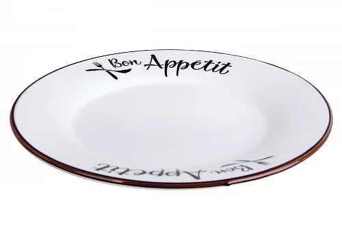 Десертная тарелка выполнена из белой качественной керамики. Посуда декорирована позитивной и аппетитной надписью.