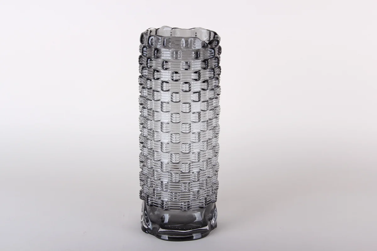 Оригинальная ваза обязательно дополнит красивый цветочный букет и создаст в помещении приятную легкую атмосферу. Изделие выполнено из стекла и декорировано выпуклым узором.