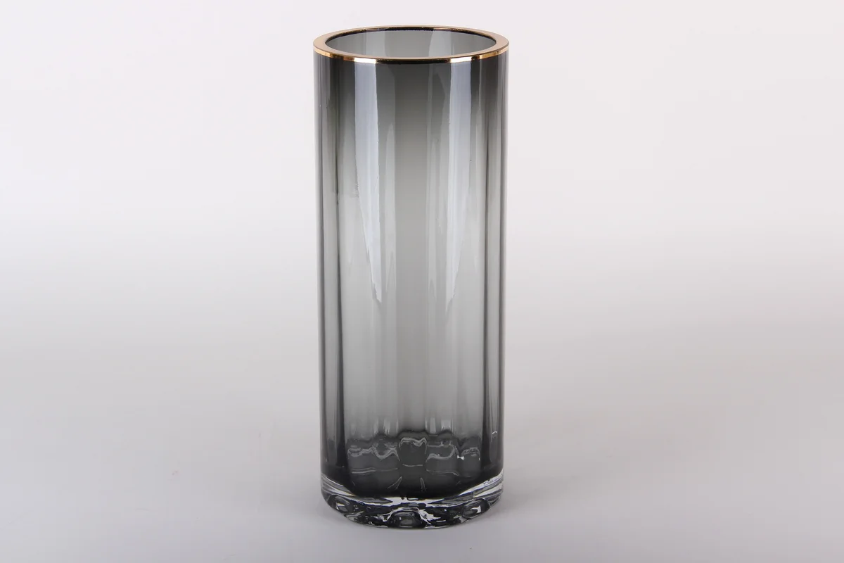 Стильная ваза обязательно дополнит красивый цветочный букет и создаст в помещении приятную легкую атмосферу. Изделие выполнено из стекла и золотую отводку по горлышку.