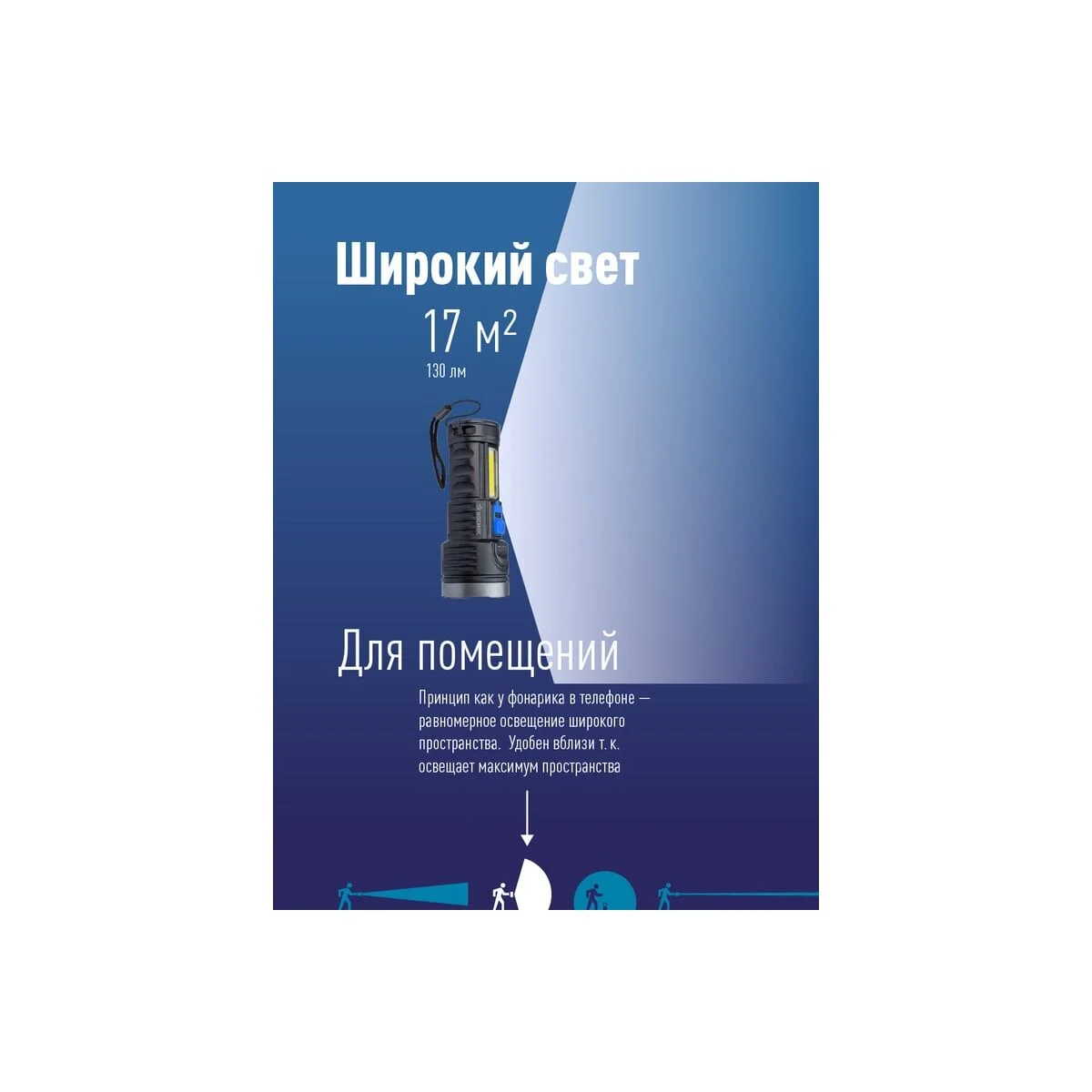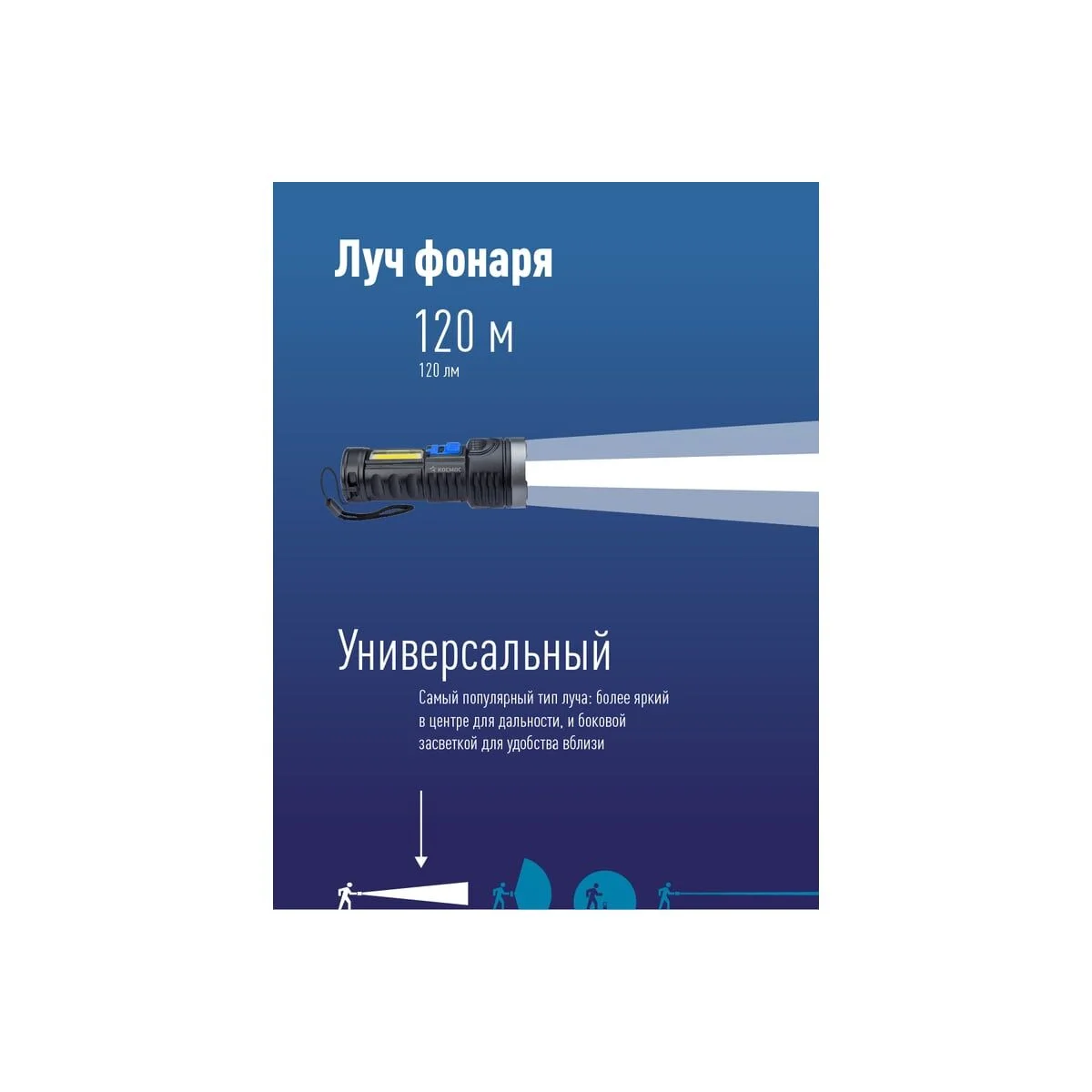 Ручной аккумуляторный фонарь КОСМОС 3Вт LED+3Вт COB, Li-ion 18650 1200mAh, ABS-пластик, индикатор, USB-шнур KOS115Lit с мощностью и свойствами прожектора в легком ручном корпусе. Совмещает луч фонаря (направленный свет) и широкий свет (освещает широкое пространство с одной стороны). Источник питания: Li-ion аккумулятор 18650 3,7В 1200 мА/ч (встроенный). Источник света: мощный луч 3Вт LED; мощный боковой светильник 3Вт COB LED.
