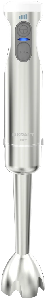 Погружной блендер KF-HB8002SPW – многофункциональное устройство, предназначенное для измельчения, смешивания, взбивания продуктов. Блендер оборудован мотором, мощность которого составляет 800 Вт. Лезвия изготовлены из прочной нержавеющей стали. Модель имеет две скорости работы. Турборежим справится с самыми твёрдыми ингредиентами и даст возможность измельчить орехи, шоколад и твёрдый сыр. Кнопки управления расположены таким образом, что блендером можно пользоваться одной рукой. Прорезиненная ручка надёжно лежит в руке и не скользит. В комплект входят венчик, измельчитель. Кнопки блендера имеют LED подсветку.