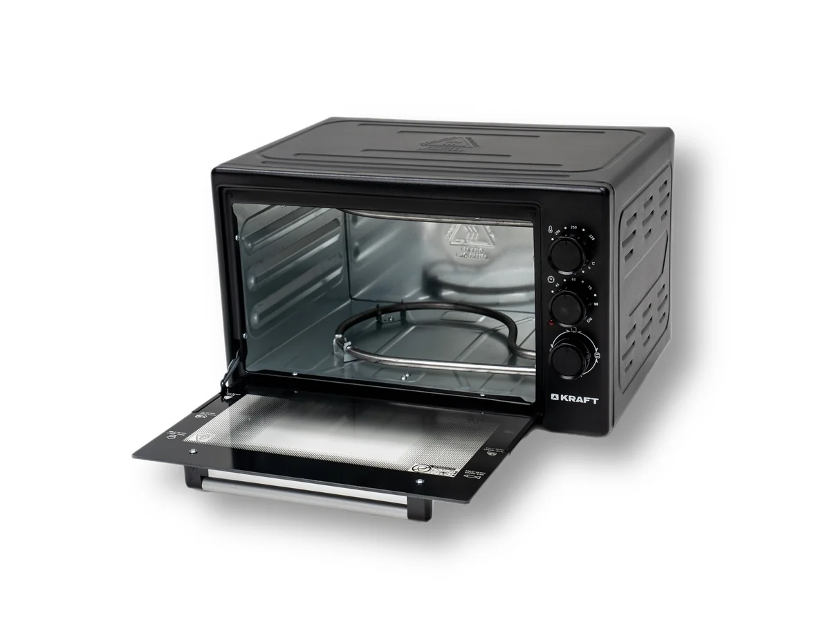 Электрическая духовка Kraft KF-MO3200 BL в черном цвете. Объем духовки 32 литра. Мощность 1500 Вт обеспечивает быстрый нагрев. В комплект входит глубокий прямоугольный противень и решетка.