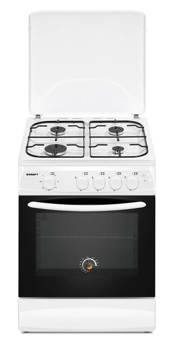 Газовая плита Kraft KF-FSK6403AGW оснащена четырьмя газовыми конфорками фирмы SABAF (Италия) с функцией автоподжига и газовым духовым шкафом объёмом 70 литров.