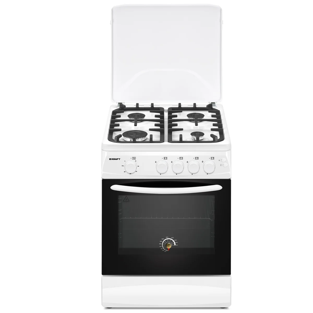 Газовая плита Kraft KF-FSK6407AGWI оснащена конфорками фирмы SABAF (Италия). Управление подачей газа осуществляется удобными поворотными переключателями. Электроподжиг функционирует как на варочной панели, так и в духовке, для его включения достаточно лишь зажать кнопку. Модель оснащена металлической крышкой с быстросъемным механизмом, поэтому крышку легко снять и помыть.