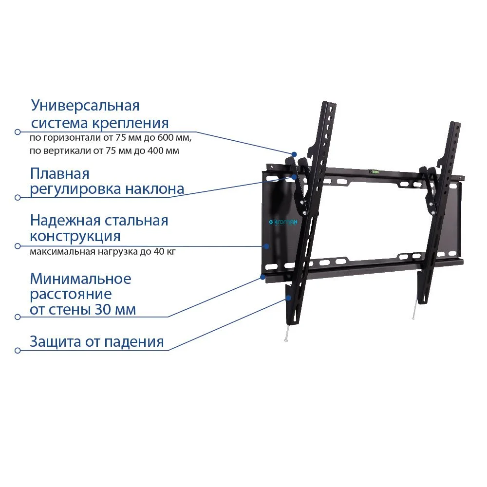 Бренд:KROMAXНазначение:для телевизоровТип установки:настенныйРегулировка:наклонныйДиагональ экрана (дюймы):32"-90"Диагональ экрана (см):81-229Расстояние от стены (мм):30Угол наклона(°):-12Нагрузка (кг):40Крепежные отверстия (VESA):75 x 75
