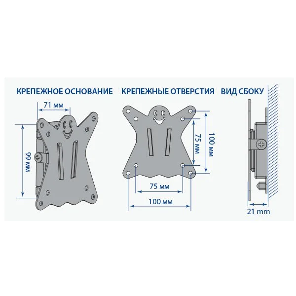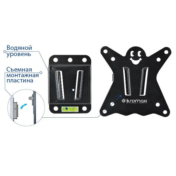 | Дополнительно | Надежная стальная конструкция, Вращение экрана ±5°, Водяной уровень, Съемная монтажная пластина |
