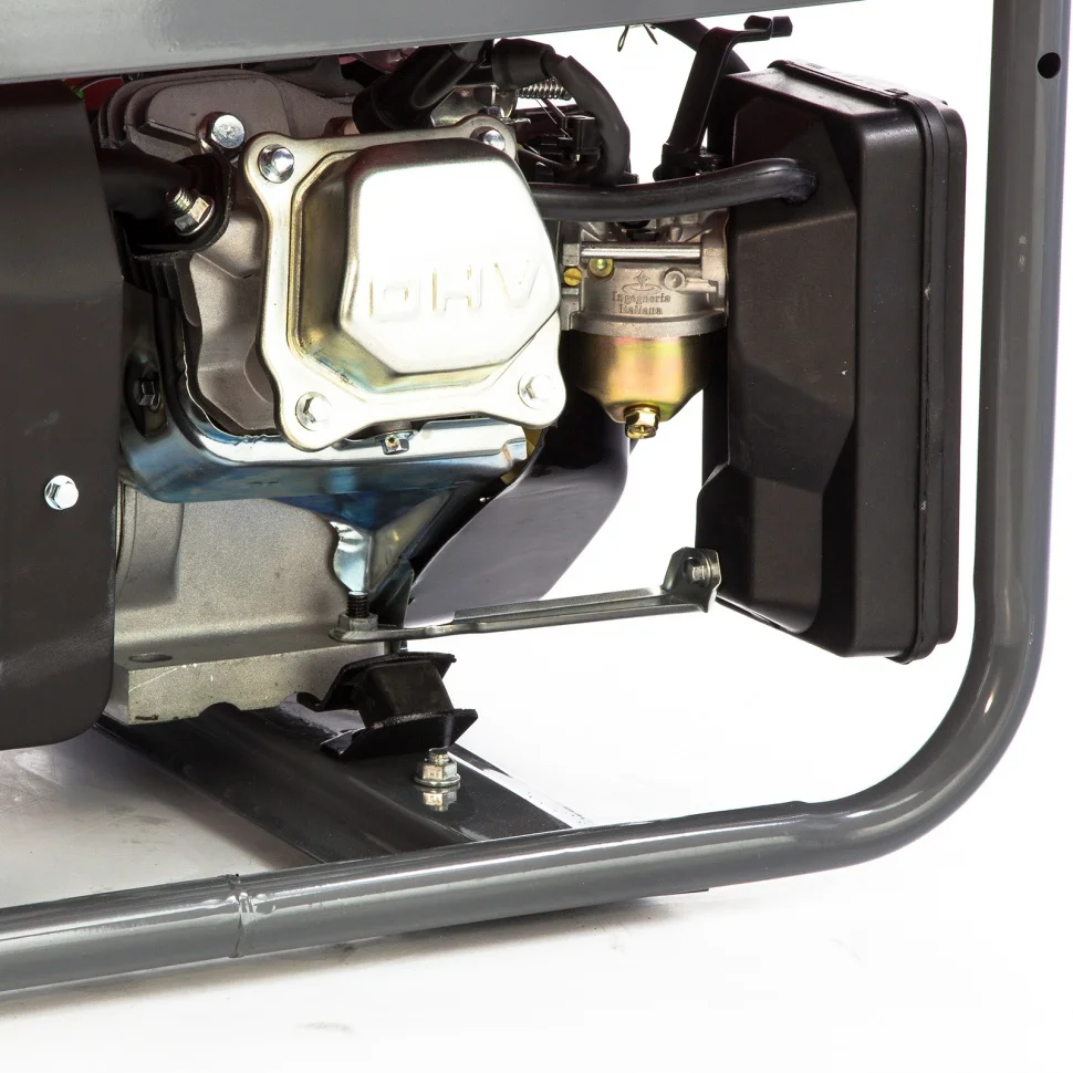 Бензиновый генератор Kronwerk LK 2500 94687, 230 В, с максимальной мощностью 2,2 кВт, объемом бака 15 л, ручным стартом, позволяет снабжать электроэнергией инструменты, предметы бытовой техники и электроники, а также осветительные приборы. Рассчитан на электроснабжение потребителей, суммарная мощность которых не превышает 2 кВт. Благодаря надежному 4-тактному двигателю устройство прослужит долго. Генератор на 220 В будет полезен на даче, в гараже, а также во время мероприятий на открытом воздухе.ПреимуществаАвтоматическая система контроля уровня масла не позволит запустить электрогенератор при недостаточном количестве или отсутствии масла в картере, что предотвращает поломку двигателя.Выключатель переменного тока срабатывает при превышении допустимой нагрузки, защищая бензиновый электрогенератор от поломки.Блок AVR регулирует выходное напряжение, обеспечивая стабильную работу чувствительных к скачкам напряжения приборов.Выход постоянного тока 12 В дает возможность заряжать автомобильные аккумуляторы.Вольтметр позволяет визуально контролировать уровень выходного напряжения.Указатель уровня топлива позволяет следить за количеством бензина в баке и вовремя заправлять его.