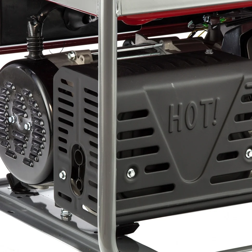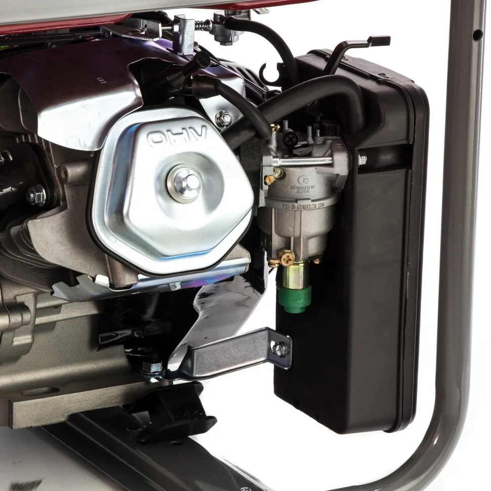 Бензиновый генератор Kronwerk LK 6500 94689 на 230 В максимальной мощностью 5,5 кВт, с баком на 25 л и ручным стартом, можно использовать на даче, в магазине, в офисе или на строительной площадке. Одновременно к нему можно подключить, например, холодильник, электрическую плиту, 5 ламп накаливания, телевизор. Несмотря на высокие показатели мощности, генератор экономно расходует топливо и способен работать 9,6 ч без дозаправки.ПреимуществаВстроенный блок AVR — подключенные приборы защищены от скачков напряжения.Автоматическое отключение при перегрузке и коротком замыкании — благодаря защите по току риск поломки двигателя минимален.Высокий ресурс движущихся элементов — специальный датчик позволяет запустить двигатель только при достаточном уровне масла.Ручной стартер — генератор быстро включается даже в холодную погоду или после долго простоя.Индикатор уровня топлива — своевременная заправка позволит избежать непредвиденной остановки работы.Удобное управление — все элементы контроля собраны на передней панели, вольтметр позволяет отслеживать напряжение в сети.Прочная стальная рама — генератор надежно защищен от механических повреждений.