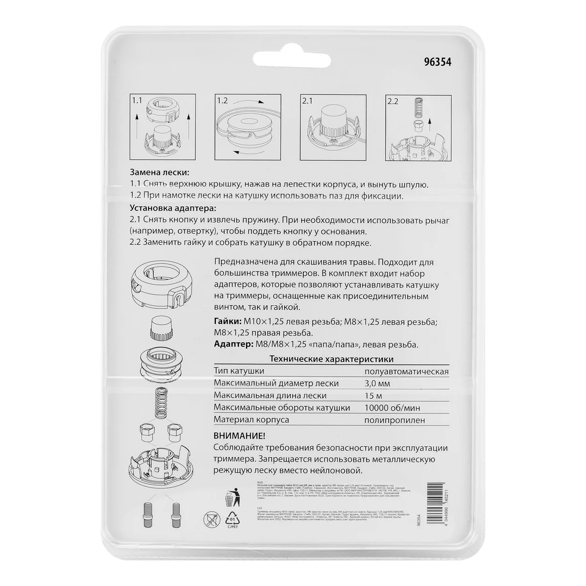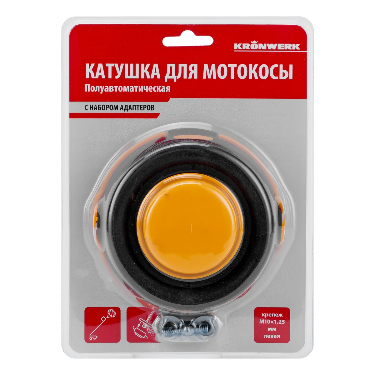Катушка для триммера гайка М10,лев,М8 лев и прав, адаптор М8 левая, шаг 1,25 мм Kronwerk 96354
