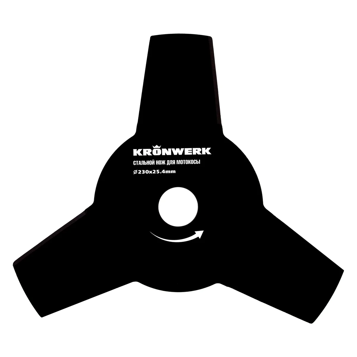 Нож для триммера Kronwerk 96341 размером 255 х 25,4 мм, толщиной 1,6 мм, с 3 лезвиями, предназначен для скашивания травы различных типов, в том числе с жесткими стеблями (полыни, крапивы, лебеды). Рекомендован к использованию со всеми типами бензиновых триммеров, а также с электрическими триммерами мощностью более 1 кВт.