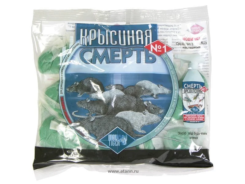 Крысиная смерть №1 200 гр - средство для уничтожения серых и черных крыс, сусликов, полевок, а также домовых мышей в жилых, нежилых и промышленных помещениях, сельскохозяйственных угодьях и полях. Благодаря уникальной технологии смешивания ингредиентов получается однородный по составу и внешнему виду ароматизированный, тестообразный продукт.
