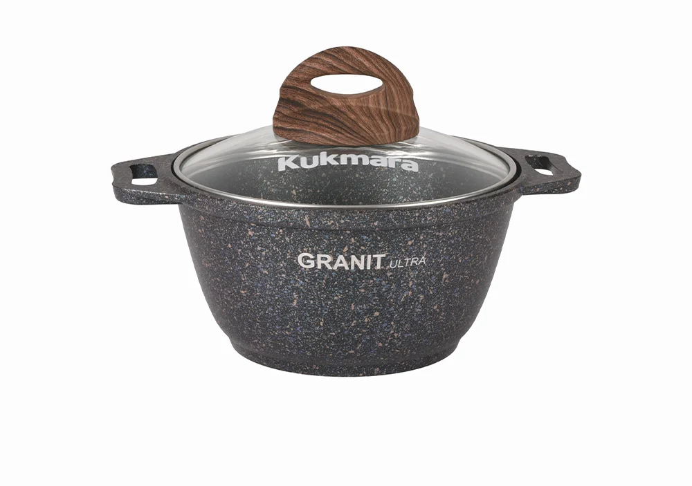 Кастрюля Kukmara с антипригарным покрытием имеет ровное проточенное дно, которое обеспечивает максимальное прилегание дна посуды к плите для более быстрого и равномерного нагрева.