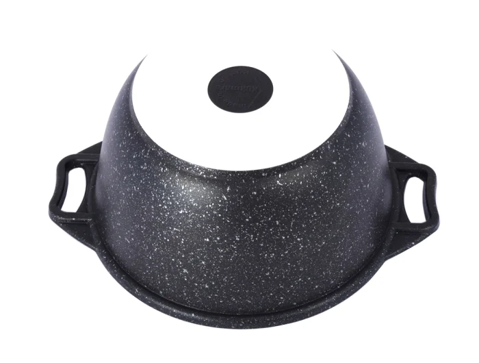 Мраморное антипригарное покрытие с твердыми частицами натурального мрамора нового поколения на водной основе разработано специально для интенсивного использования на каждый день. Антипригарное покрытие надолго сохраняет первозданную привлекательность посуды, а превосходные антипригарные свойства будут радовать на протяжении очень долгого времени. Покрытие не требует особенного ухода, легко моется как вручную, так и в посудомоечной машине (в режиме Eco без предварительного замачивания). Допускает использование только деревянных и силиконовых предметов.