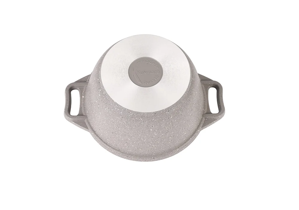 Кастрюля Kukmara с антипригарным покрытием имеет ровное проточенное дно, которое обеспечивает максимальное прилегание дна посуды к плите для более быстрого и равномерного нагрева.