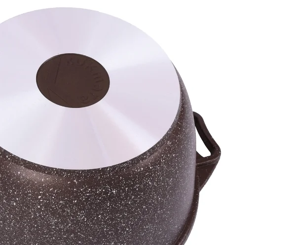 Кастрюля Kukmara с антипригарным покрытием имеет ровное проточенное дно, которое обеспечивает максимальное прилегание дна посуды к плите для более быстрого и равномерного нагрева.