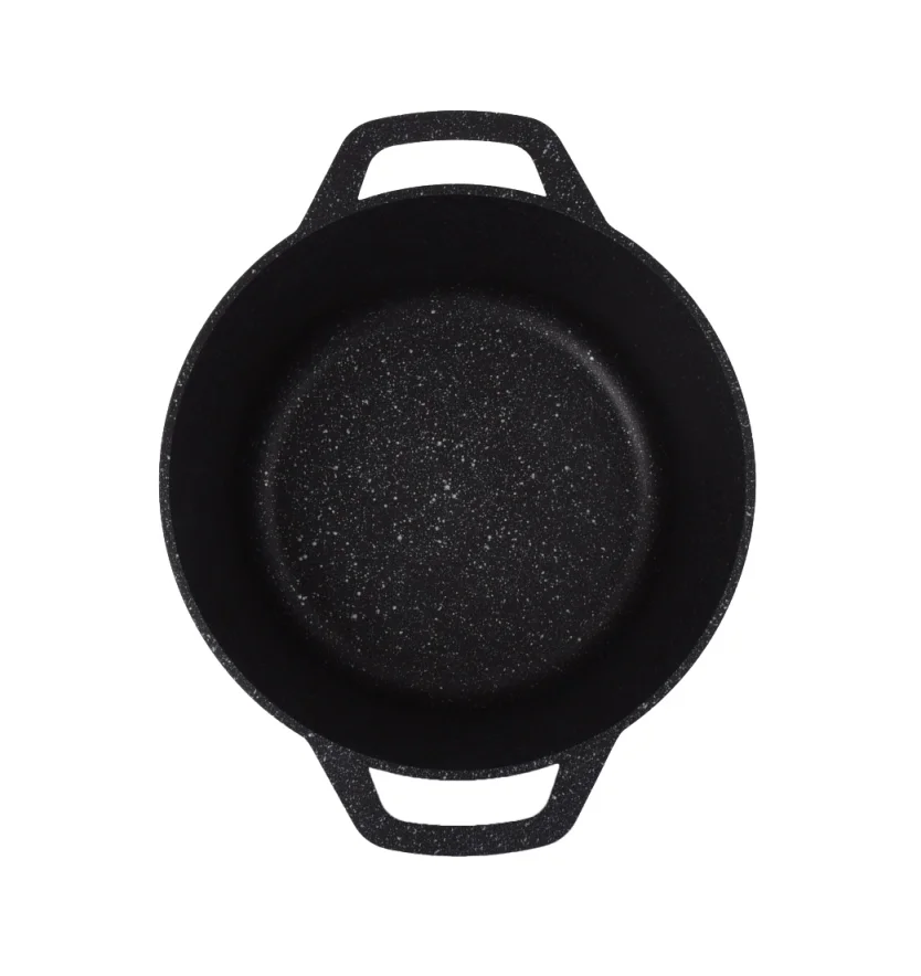 Мраморное антипригарное покрытие с твердыми частицами натурального мрамора нового поколения на водной основе разработано специально для интенсивного использования на каждый день. Антипригарное покрытие надолго сохраняет первозданную привлекательность посуды, а превосходные антипригарные свойства будут радовать на протяжении очень долгого времени. Покрытие не требует особенного ухода, легко моется как вручную, так и в посудомоечной машине (в режиме Eco без предварительного замачивания). Допускает использование только деревянных и силиконовых предметов.