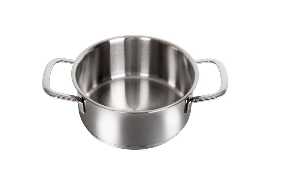 Ручки надежно закреплены на корпусе методом контактной сварки. Стильный внешний вид и удобная конструкция обеспечивают надежный захват. Посуду с ручками можно использовать в духовом шкафу.
