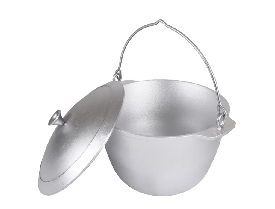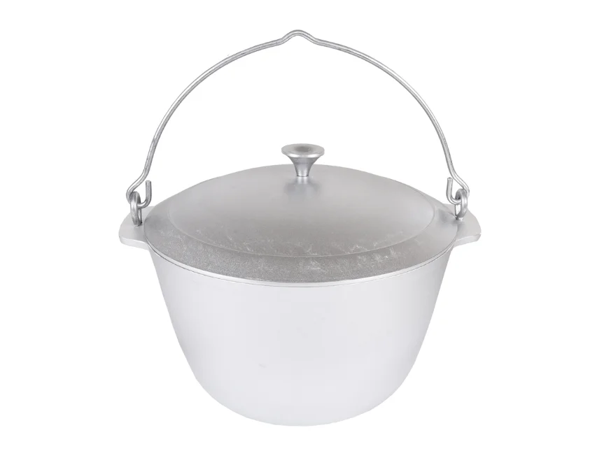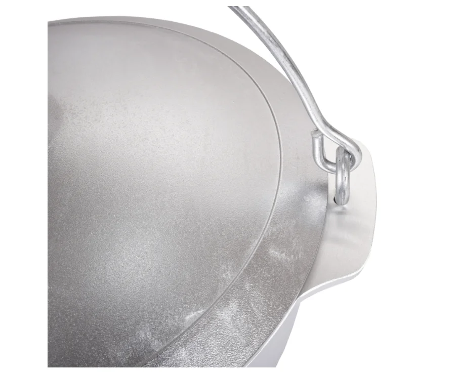 Прочный литой корпус и утолщенные стенки до 6мм гарантирует долговечность и прочность изделия, а также обеспечивают равномерное распределение тепла для приготовления пищи, тушения и поджарки с сохранением естественных ароматов. Для подвешивания над костром или для переноса посуда имеет удобную ручку. Корпус котла с плоским дном позволяет использовать котел как в походных, так и в домашних условиях на газовых и электрических плитах.
