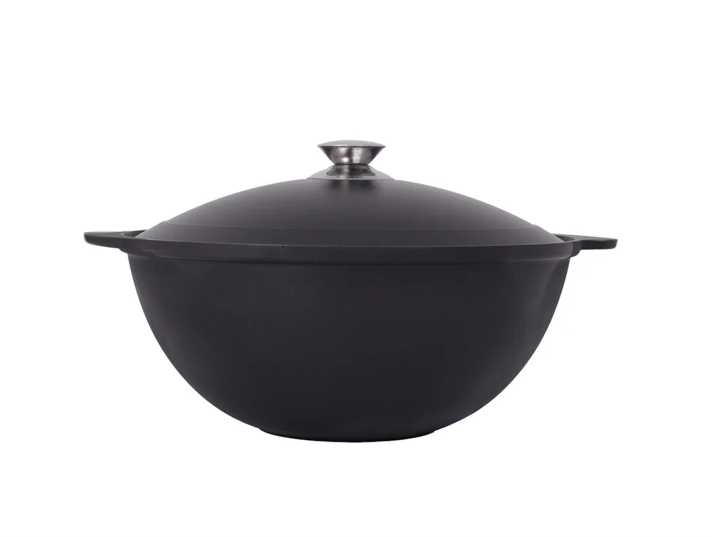Казан - традиционная азиатская посуда, отличающаяся сферическим дном, все больше и больше набирает свою популярность. Такая форма обеспечивает равномерное распределение тепла по стенкам: в них можно варить, как в обычных кастрюлях, а также тушить, томить, делать предварительную обжарку. Литой алюминиевый казан особенно подойдет тем, кто любит плов, чахохбили и думляму. Цельнолитые ручки позволяют использовать казан в духовом шкафу. Казаны для плова 3,5л и 4,5л комплектуются стеклянными крышками из термостойкого стекла. Казаны для плова 6л, 7л, 9л комплектуются металлическими (алюминиевыми) крышками. Все крышки комплектуются ручками из нержавеющей стали, поэтому их можно использовать в духовом шкафу.