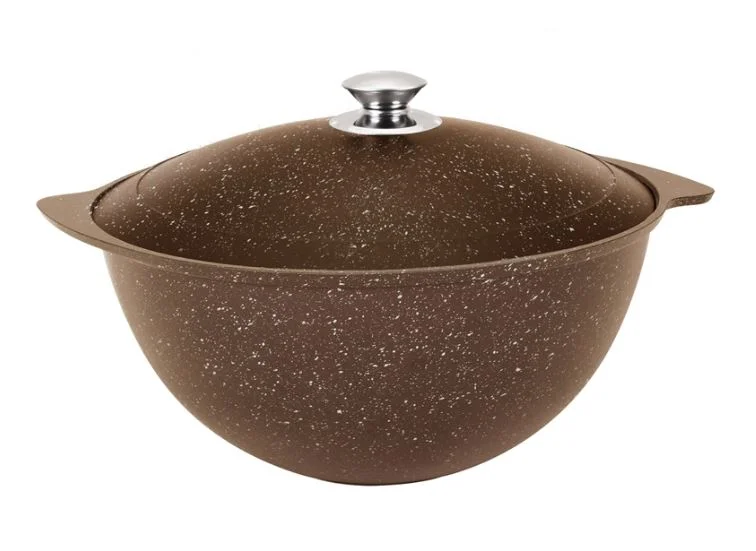 Казан - традиционная азиатская посуда, отличающаяся сферическим дном, все больше и больше набирает свою популярность. Такая форма обеспечивает равномерное распределение тепла по стенкам: в них можно варить, как в обычных кастрюлях, а также тушить, томить, делать предварительную обжарку. Литой алюминиевый казан особенно подойдет тем, кто любит плов, чахохбили и думляму. Цельнолитые ручки позволяют использовать казан в духовом шкафу. Казаны для плова 3,5л и 4,5л комплектуются стеклянными крышками из термостойкого стекла. Казаны для плова 6л, 7л, 9л комплектуются металлическими (алюминиевыми) крышками. Все крышки комплектуются ручками из нержавеющей стали, поэтому их можно использовать в духовом шкафу.