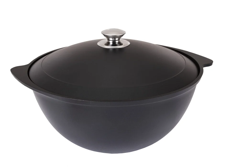 Казан - традиционная азиатская посуда, отличающаяся сферическим дном, все больше и больше набирает свою популярность. Такая форма обеспечивает равномерное распределение тепла по стенкам: в них можно варить, как в обычных кастрюлях, а также тушить, томить, делать предварительную обжарку. Литой алюминиевый казан особенно подойдет тем, кто любит плов, чахохбили и думляму. Цельнолитые ручки позволяют использовать казан в духовом шкафу. Казаны для плова 3,5л и 4,5л комплектуются стеклянными крышками из термостойкого стекла. Казаны для плова 6л, 7л, 9л комплектуются металлическими (алюминиевыми) крышками. Все крышки комплектуются ручками из нержавеющей стали, поэтому их можно использовать в духовом шкафу.