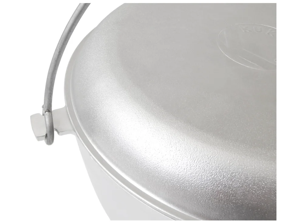 Прочный литой корпус и утолщенные стенки до 6мм гарантирует долговечность и прочность изделия, а также обеспечивают равномерное распределение тепла для приготовления пищи, тушения и поджарки с сохранением естественных ароматов. Для подвешивания над костром или для переноса посуда имеет удобную ручку.