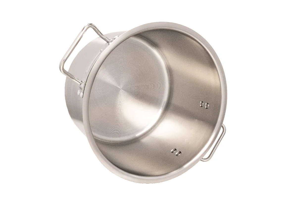 Вся линия больших котлов «HoReCa» оснащена утолщённым ударопрочным дном, состоящим из трёх слоёв металла. Теплораспределительный промежуточный слой из 3мм алюминия способствует быстрому распределению тепла и равномерному нагреву по всей поверхности. Индукционно дно придаёт изделиям магнитные свойства и позволяет использовать на всех типах плит.