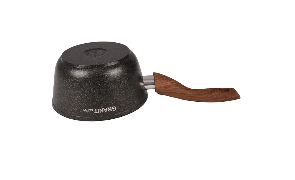 В ковше из литого алюминия с антипригарным покрытием ultra granit совершенно всё: современный дизайн, идеальные пропорции, безупречная подборка палитры цвета ручки и корпуса, расширенный функционал.
