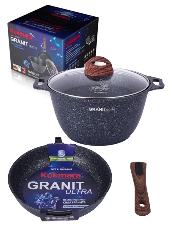 Ультрапрочное многослойное антипригарное покрытие ultra granit позволяет использовать даже неострые металлические предметы. Такое покрытие, усиленное сверхтвердыми минералами близкими по твердости к алмазу, гарантирует долгий срок службы даже при ежедневном использовании, при этом абсолютно безопасно для здоровья, без PFOA. Покрытие не требует особенного ухода, легко моется как вручную, так и в посудомоечной машине (в режиме Eco без предварительного замачивания).