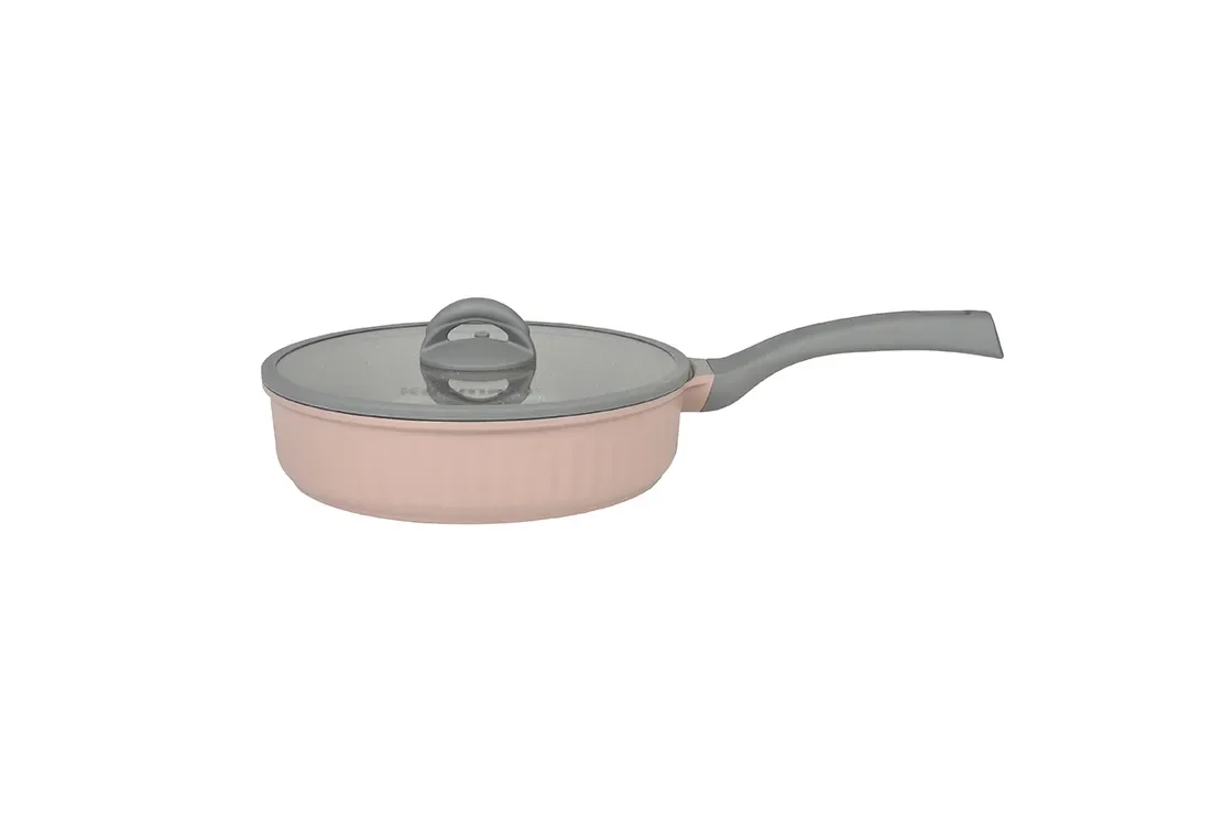 Ассортимент линейки – это кастрюли 3,2л, 4,2л, 5,2л в комплекте с плоскими стеклянными крышками с ободом из силикона серого цвета, а также глубокие вме-стительные сковороды 220, 240, 260 и 280мм с увеличенной рабочей площадью. Вся посуда комплектуется бакелитовыми несъемными ручками серого цвета с по-крытием soft-touch.